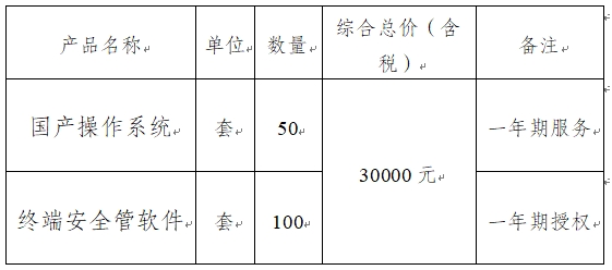 重庆化医控股(集团)公司因工作需要,需购买国产操作系统(一年期服务)软件50套、终端安全管理系统软件(一年期授权)100套,诚邀贵公司参与该项目竞争性谈判报价。